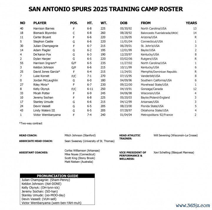 09月30日讯 NBA球队媒体日,马刺公布了练习 营名单。
