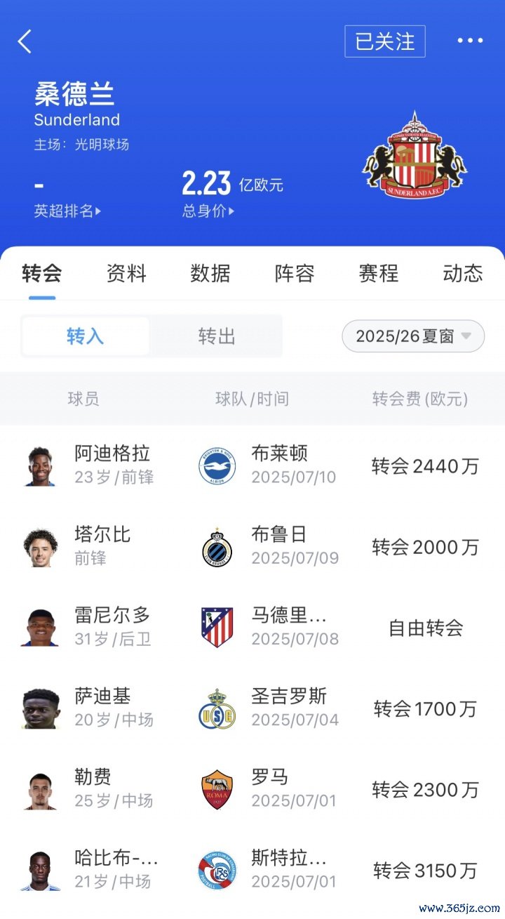 桑德兰今夏的引援支出已达到1.159亿欧引进6人,网球新闻在英超排名第7,仅次于经典 的BIG6。