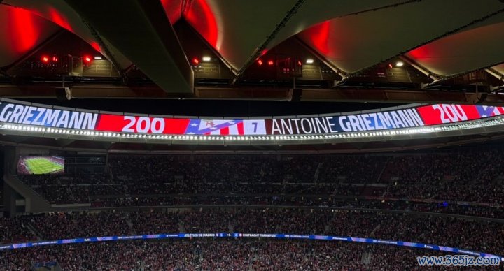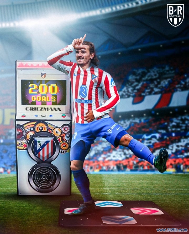 这粒得分 是格列兹曼为马竞打进的第200球,他以454次出场完成这个成就!