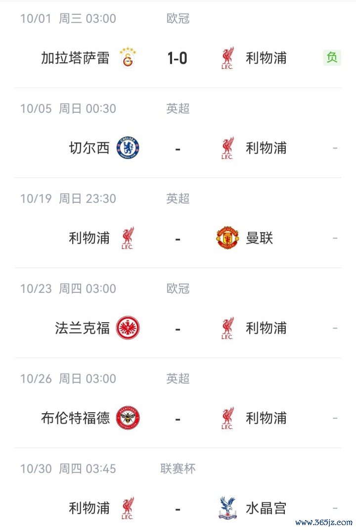 本周末, 葡超新闻网足球直播利物浦将在职业联赛 中对阵切尔西,网球新闻后者职业联赛 遭遇两连败。之后进入国际赛事 日,10月下半月,利物浦又将连战曼联、法兰克福、布伦特福德和水晶宫。