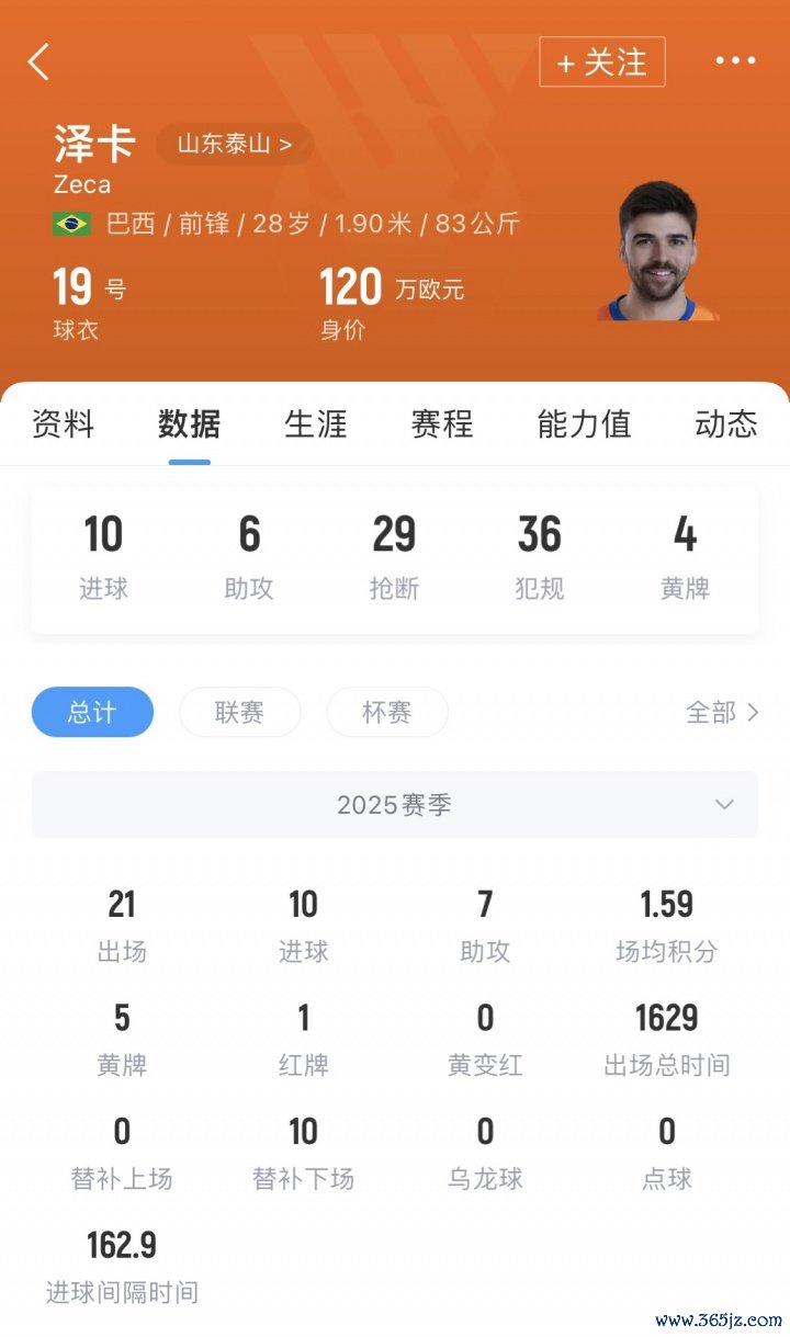 2024年加盟山东后, 篮球新闻资讯泽卡首个赛季遭遇受伤 困扰, 葡超新闻网2025年他终于迎来稳定的出场,直播吧21场赛事 贡献10球7助。