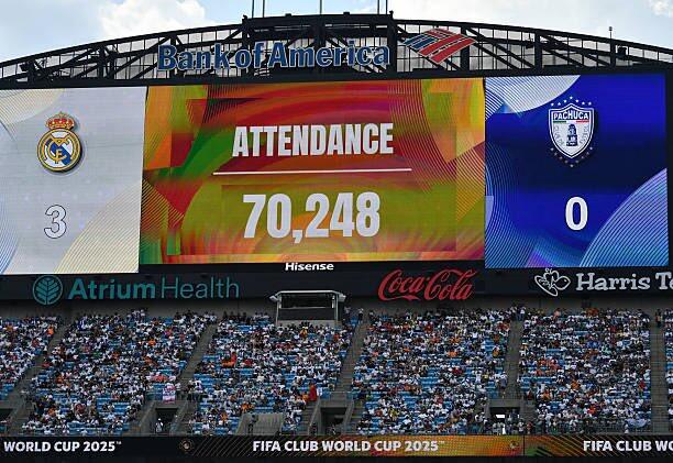 世俱杯小组赛第2轮, 葡超新闻网皇马在美国银行运动场 3-1帕丘卡,体育直播现场观赛人群 达到70248人,运动活动 场 容量为75000人,上座率93.66%。